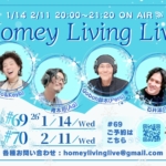 『Homey Living Live』毎月第2水曜20~21時半OnAir♫ ㊗配信継続50回!